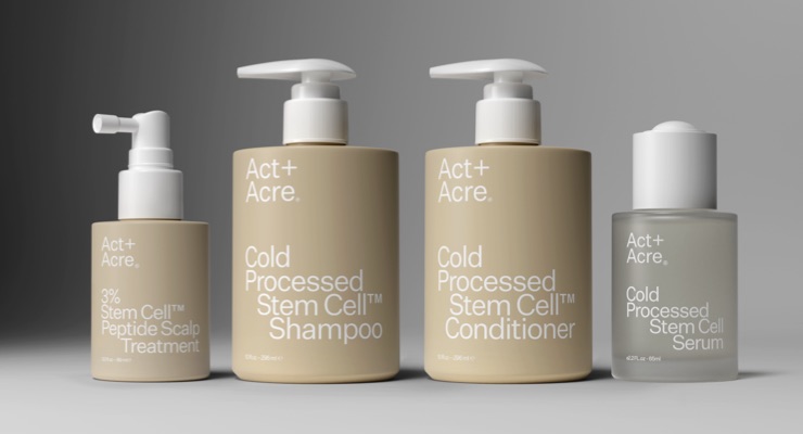 It is said that some 21 million women suffer from hair loss with 50% of them experiencing this before the age of 40. To that end, Act + Acre has released new collection to help menopausal women with hair loss. This trichologist-formulated collection, which is stocked at Sephora, is made for those struggling with hair thinning and density and hair loss. The shampoo and conditioner contain a patented H2-Grow Complex, while the Stem Cell Treatment contains Act + Acre’s H3-Grow+ Complex. These complexes contain a combination of stem cells, peptides, and antioxidants that help the hair look thicker, denser, fuller, and healthier, according to the brand. The formulations are created via cold process technology. Stem Cell Shampoo is SLS-free. It removes impurities and debris and unclogs hair follicles while Swiss Apple stem cells and caffeine support hair follicle health and support the natural hair growth cycle. The formulation also contains H2-Grow Complex and hyaluronic acid. The Stem Cell Conditioner contains plant-based stem cells and botanical oils that condition the scalp to improve hair follicle health while preventing breakage for visibly fuller and thicker hair. Components include H2-Grow Complex, meadowfoam seed oil and abyssinica oil. This formulation is developed using cold-process technology. Act + Acre’s 3% Stem Cell Peptide Treatment is a scalp treatment that contains H3-Grow+ Complex—a blend of nine ingredients that are proven to stimulate and extend the growth phase while preserving hair follicle stem cells for improved hair density and thickness, according to Act + Acre. The treatment also contains growth peptide and ginseng.