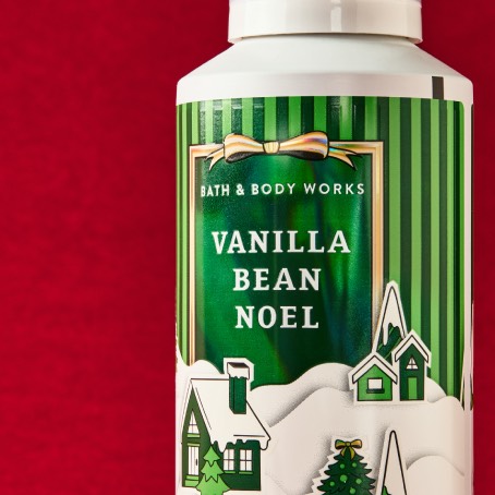 Vanilla Bean Noel has notes of fresh vanilla bean, warm caramel, sugar cookies, whipped cream, and snow-kissed musk bring the scent of holiday cookies to the shower stall.