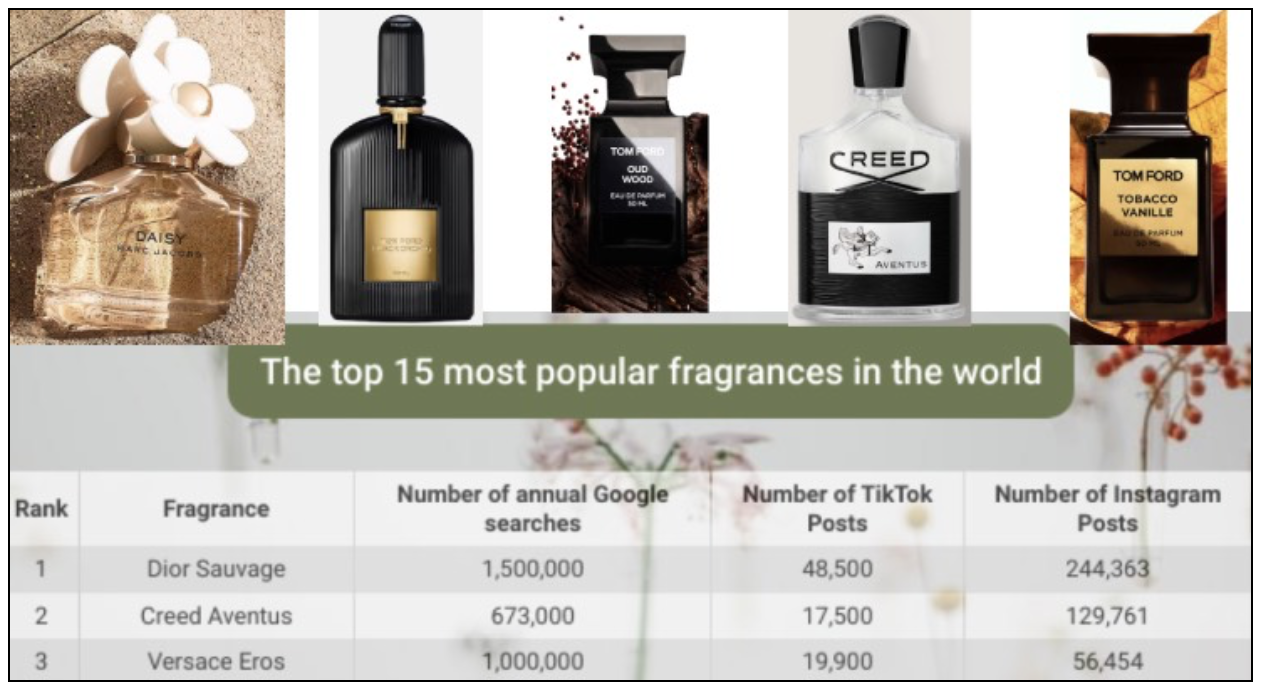 Idealo has released its top 15 fragrances in the world for 2024. The ranking was determined by the number of Google searches and the number of TikTok and Instagram posts.