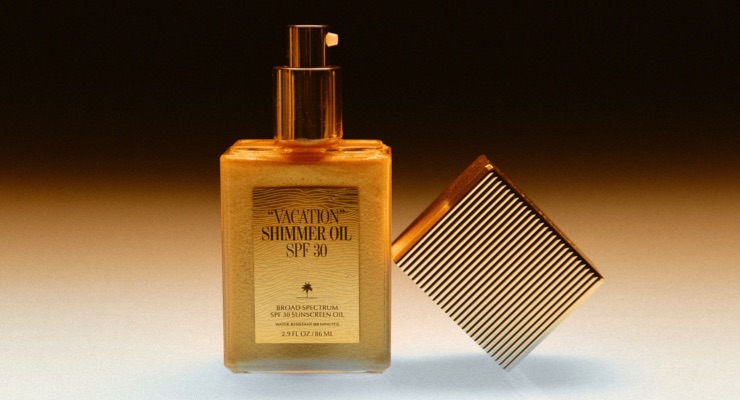Vacation Inc.’s newest sun product is Shimmer Oil SPF 30. The water-resistant (80 minutes) formula contains SPF 30 plus a blend of premium oils (argan, marula and jojoba) infused with a base layer of pearlescent gold mica and larger gold mica flecks, according to the Miami-based company.