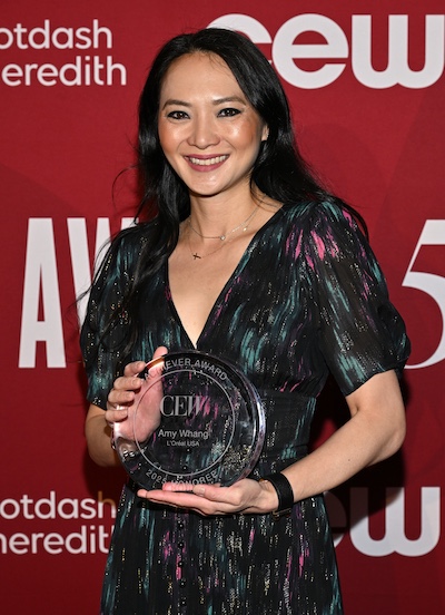 Amy Whang, president, US, Maybelline NY-Garnier-Essie, L’Oréal USA. Award presented by Christina Fair, L’Oréal USA