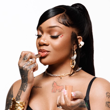 For her face, makeup artist Sadai Banks lined GloRilla’s lips with Fenty Beauty Trace’d Out Pencil Lip Liner in “I Woodn’t,” a neutral-brown shade in a creamy, long-wear pencil. Next, she applied two different layers of hydrating gloss – first, she used Fenty Beauty Gloss Bomb Stix High-Shine Gloss Stick in “Two’Lip Kiss,” a light peach, glossy, medium pigment lipstick followed by Fenty Skin Treatz Hydrating + Strengthening Lip Oil in “Dragon Fruit.” Rihanna’s Fenty Treatz goes on clear and cushions lips with fruit oils and extracts to strengthen the lips’ moisture barrier for a softer, fuller pout.