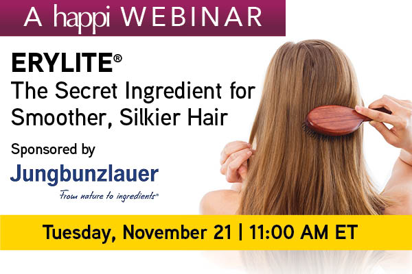 Join us for a webinar on how ERYLITE®, a natural ingredient, can improve the performance of shampoos and conditioners. Learn how ERYLITE® can improve combability, manageability, anti-frizz effect, foam behavior, and compatibility with other ingredients.