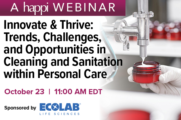 Join us for a discussion on cleaning and sanitization trends in Personal Care Manufacturing. Ecolab technical consultants will cover emerging consumer preferences, market changes, regulatory trends, and how they affect cleaning and sanitization programs. Learn practical strategies to be prepared for a rapidly changing future!